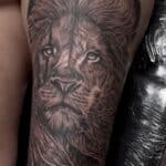 Tetování zvíře a znamení zvěrokruhu lev na stehno