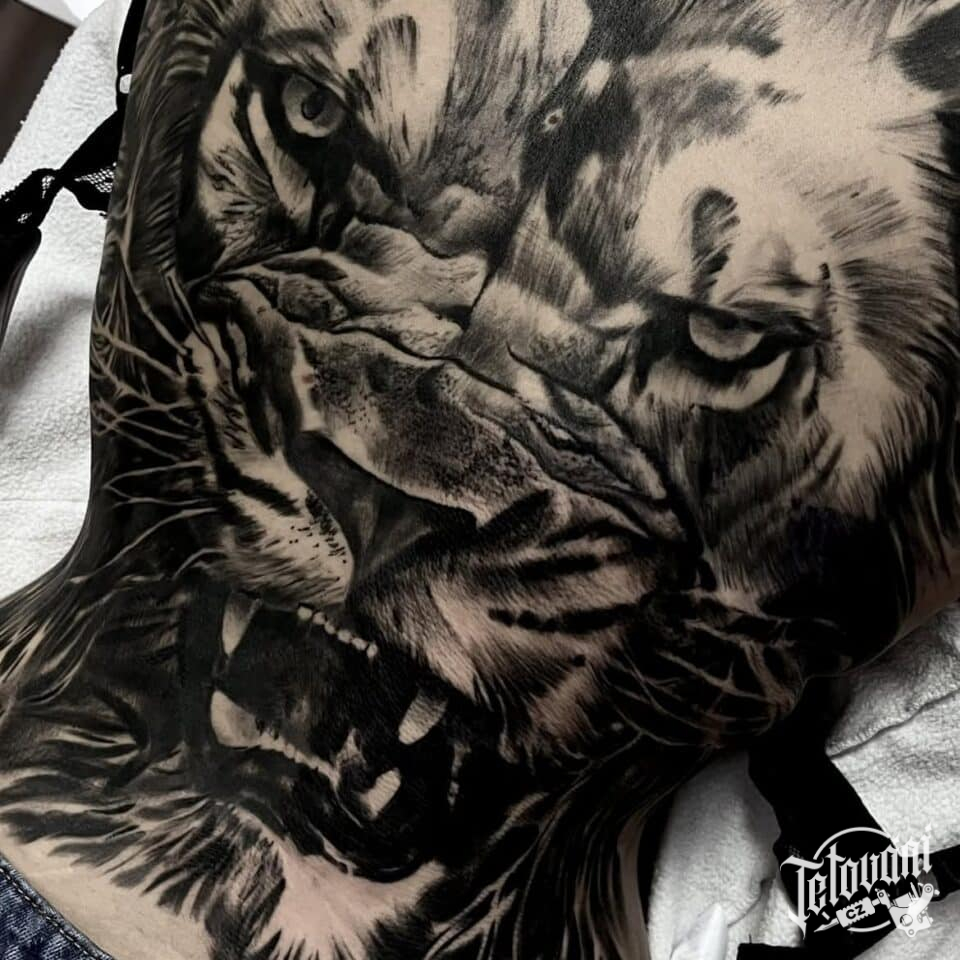 Tetování zvíře a znamení zvěrokruhu lev na záda
