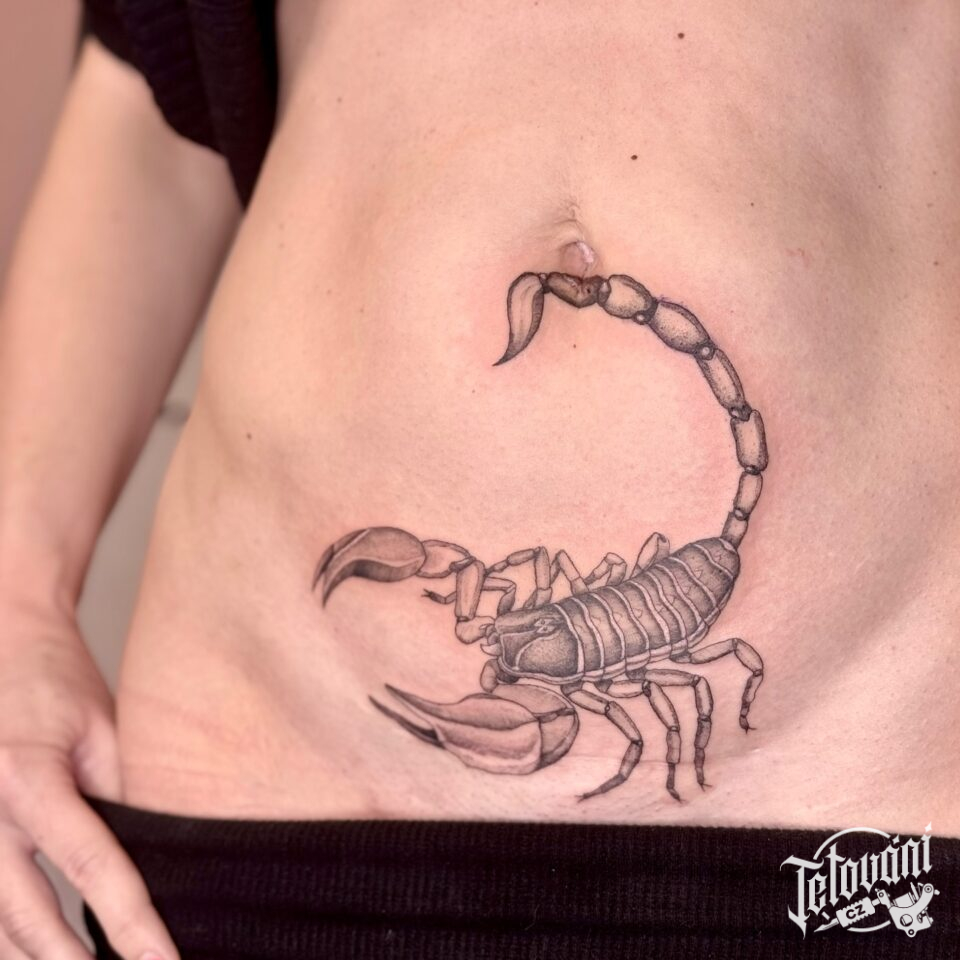 Tetování zvíře a znamení zvěrokruhu štír na břicho
