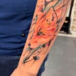 Tetování zvíře, abstraktní liška s květinami, rukáv