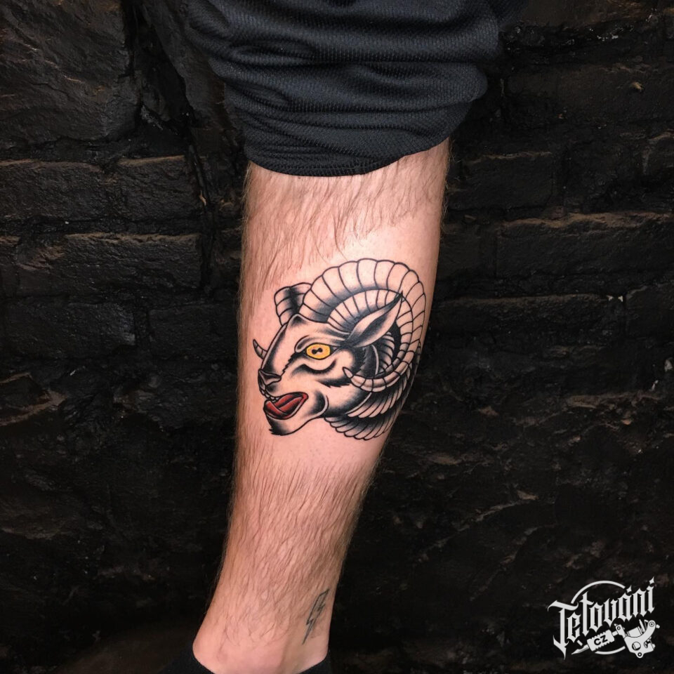 Tetování zvíře beran, beran znamení zvěrokruhu na lýtko