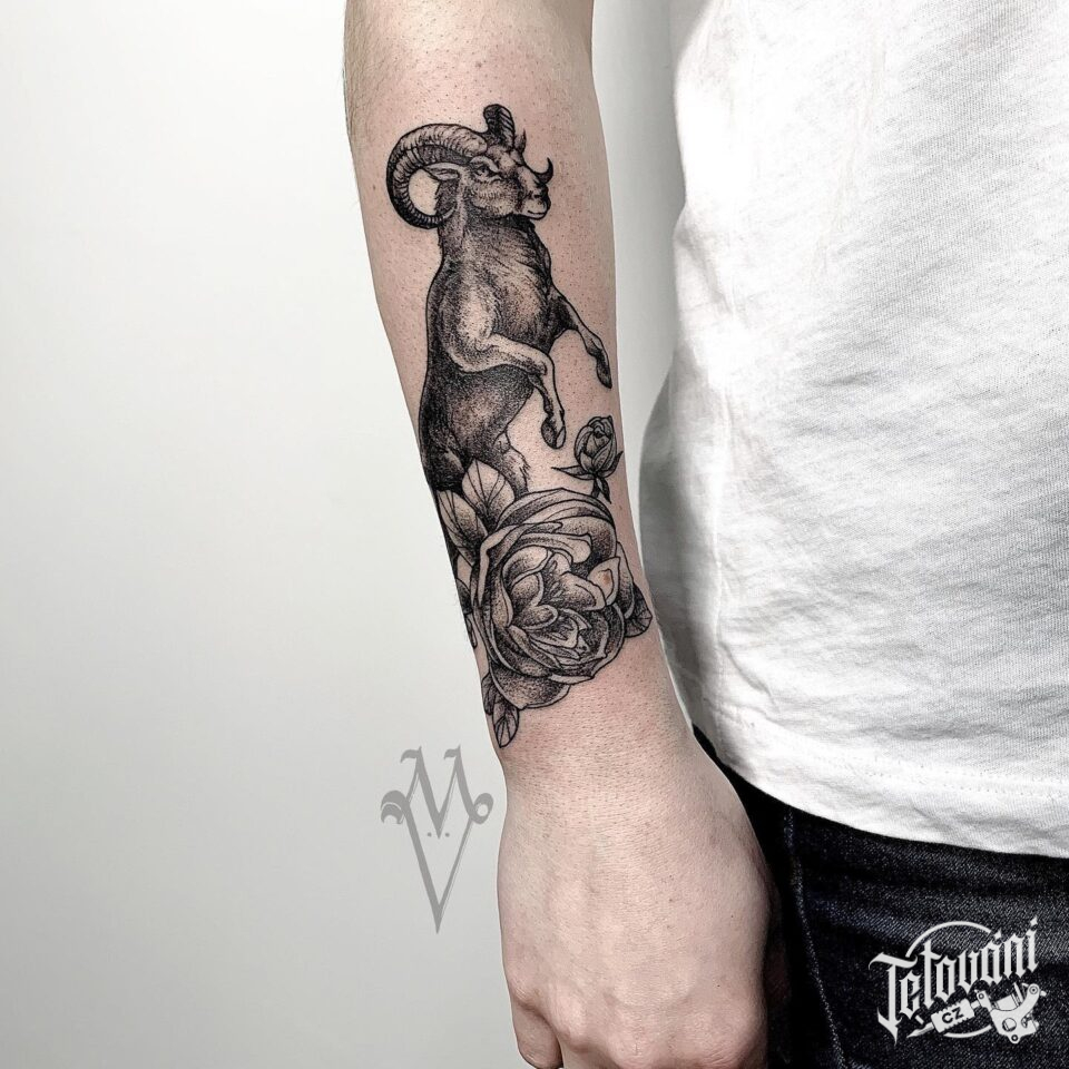 Tetování zvíře, beran znamení zvěrokruhu na předloktí