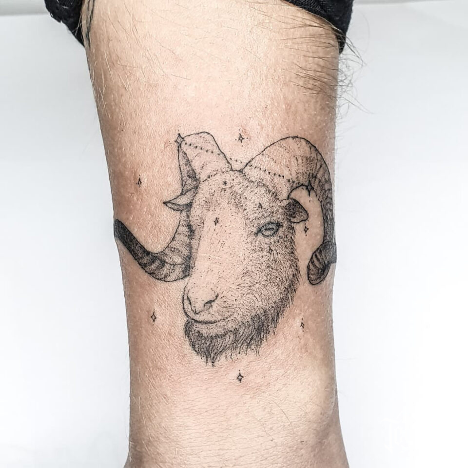 Tetování zvíře, beran znamení zvěrokruhu na ruce