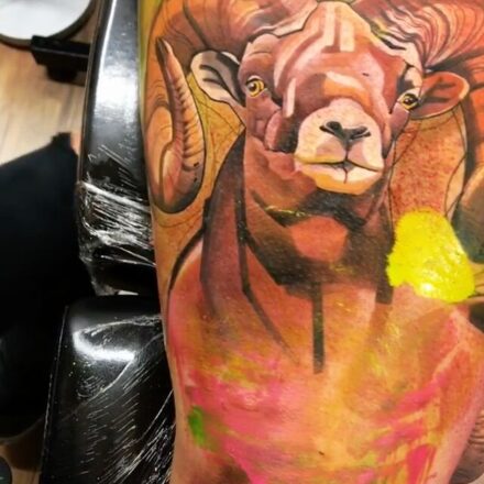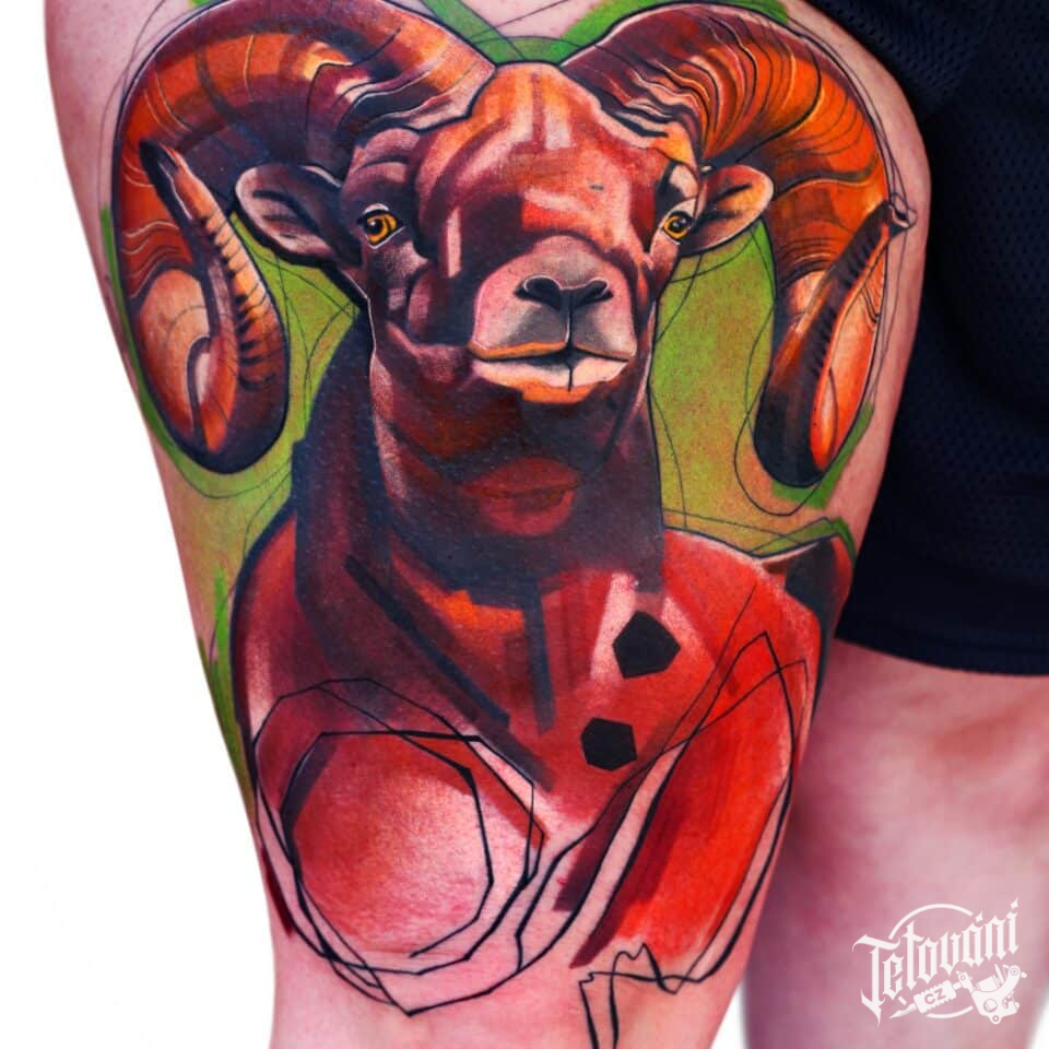 Tetování zvíře, beran znamení zvěrokruhu na stehně