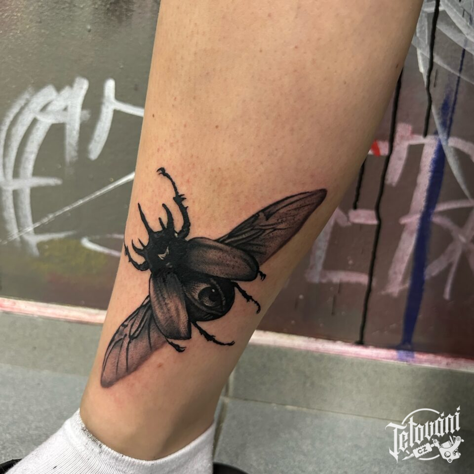 Tetování zvíře, brouk s okem na noze