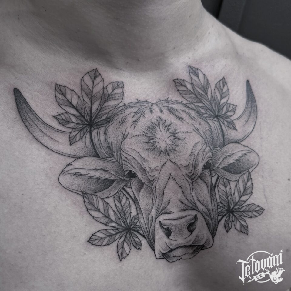 Tetování zvíře, býk znamení zvěrokruhu na hrudi