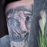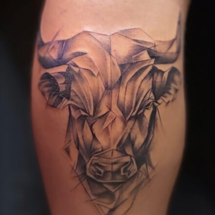 Tetování zvíře, býk na stehně