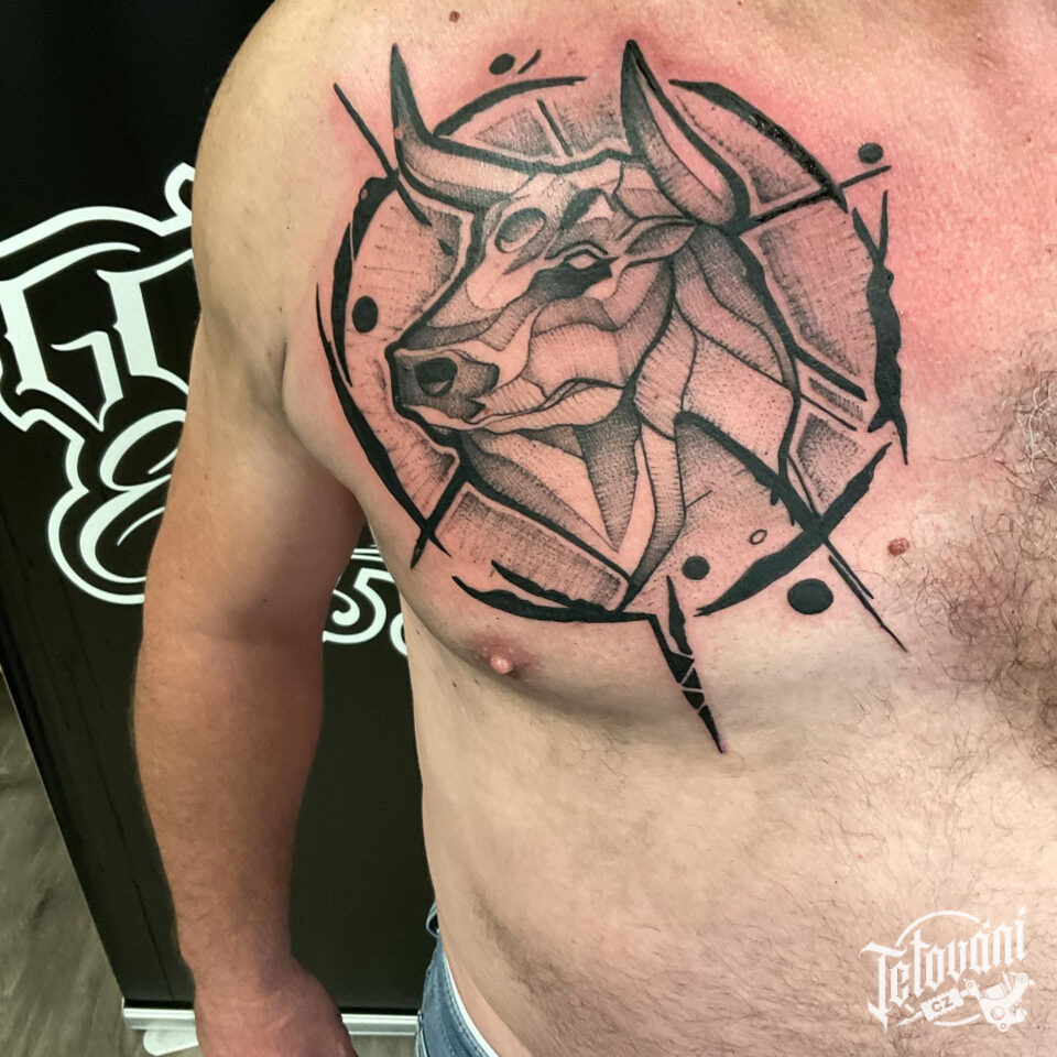 Tetování zvíře, býk znamení zvěrokruhu na hrudi