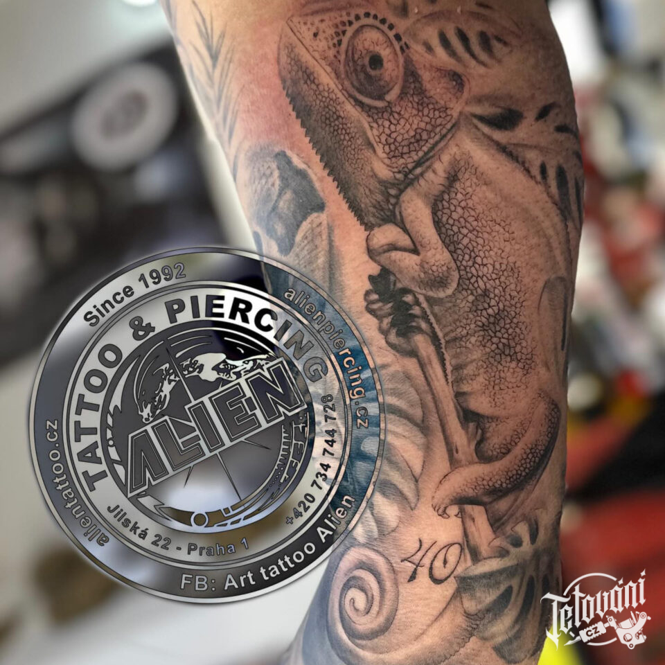 Tetování zvíře, chameleon na paži