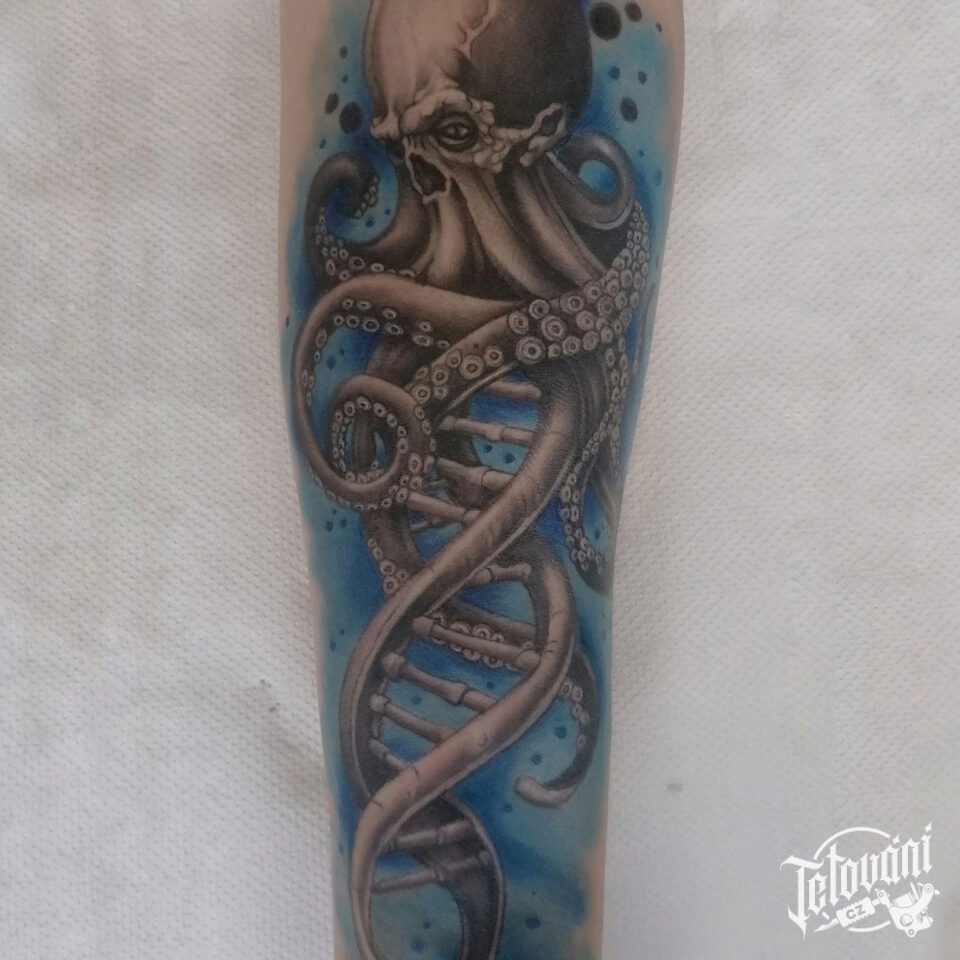 Tetování zvíře, chobotnice DNA na předloktí