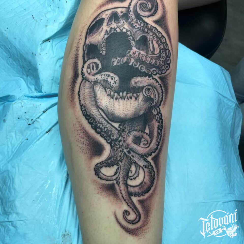 Tetování zvíře chobotnice na lýtko