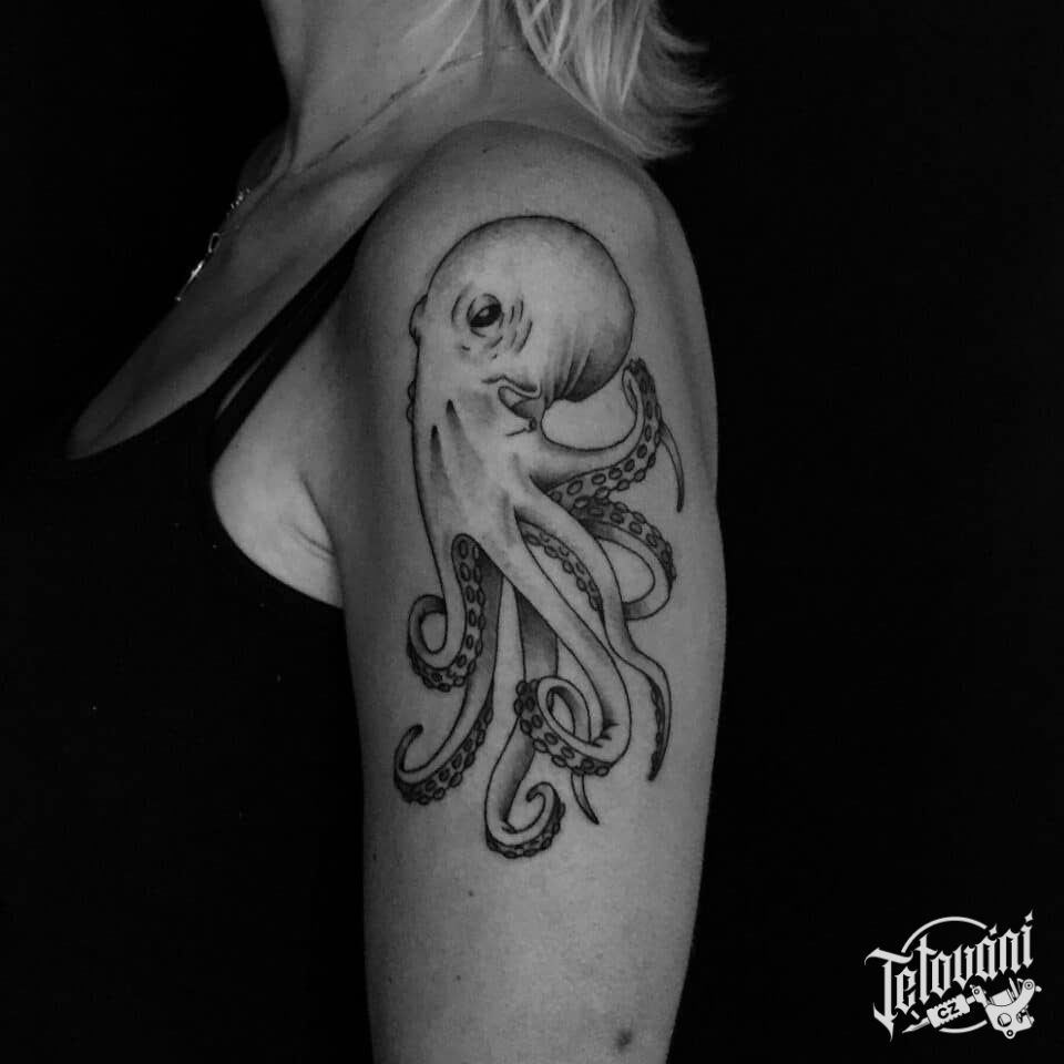 Tetování zvíře chobotnice na rameno