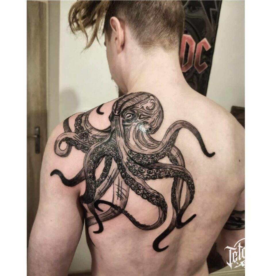 Tetování zvíře, chobotnice na zádech