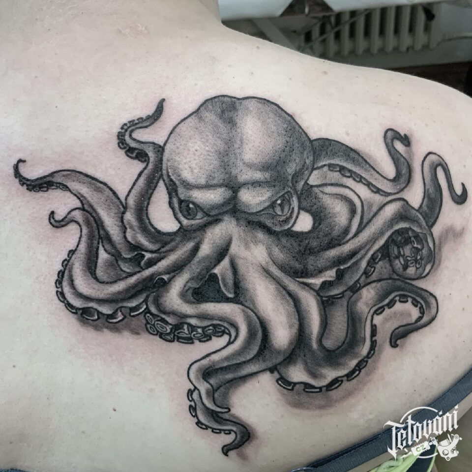 Tetování zvíře, chobotnice na zádech