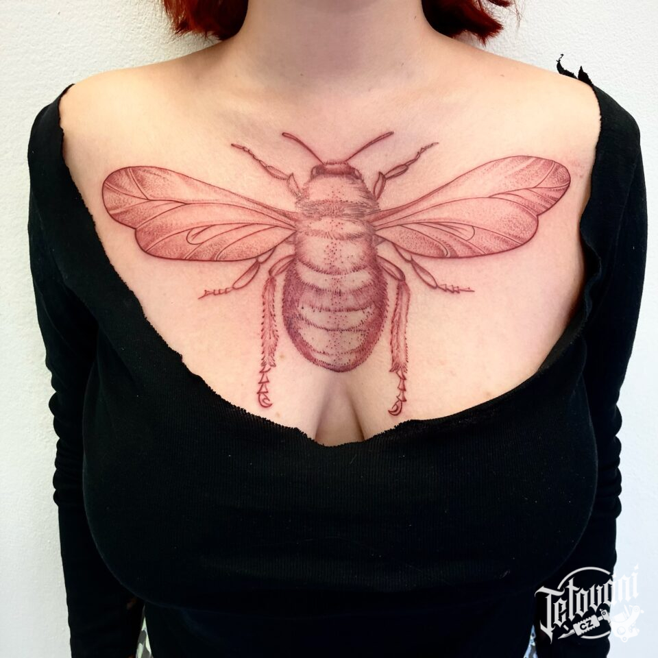Tetování zvíře, čmelák na hrudi