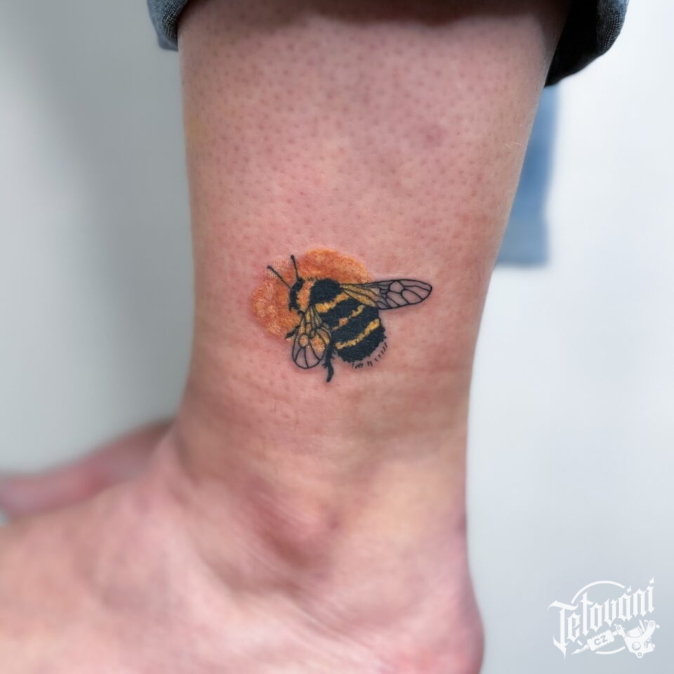Tetování zvíře, čmelák nad kotníkem