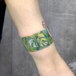 Tetování zvíře, dinosaurus a květiny na bicepsu