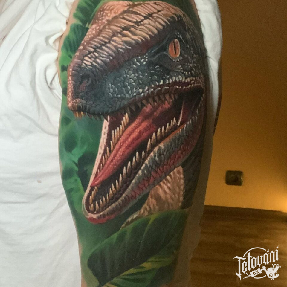 Tetování zvíře, dinosaurus na paži
