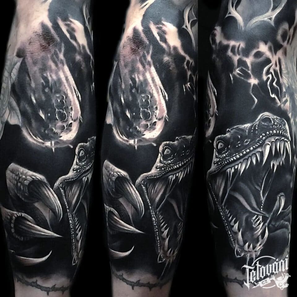 Tetování zvíře, dinosaurus na předloktí