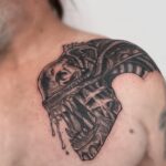 Tetování zvíře dinosaurus pod klíční kost