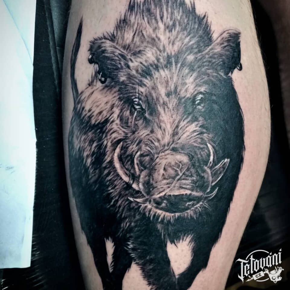 Tetování zvíře, divočák na lýtku
