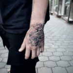 Tetování zvíře, divoká kočka, levhart na hřbetu ruky