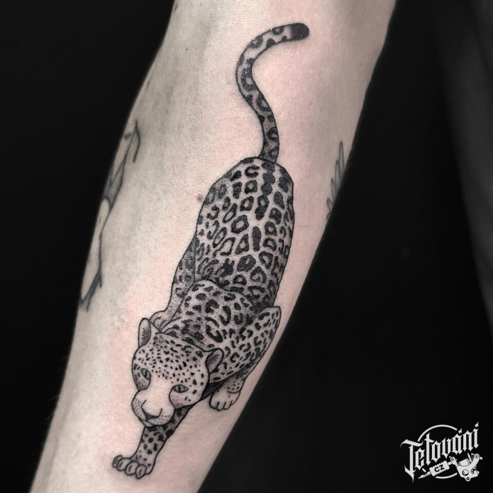 Tetování zvíře, divoká kočka, levhart na předloktí