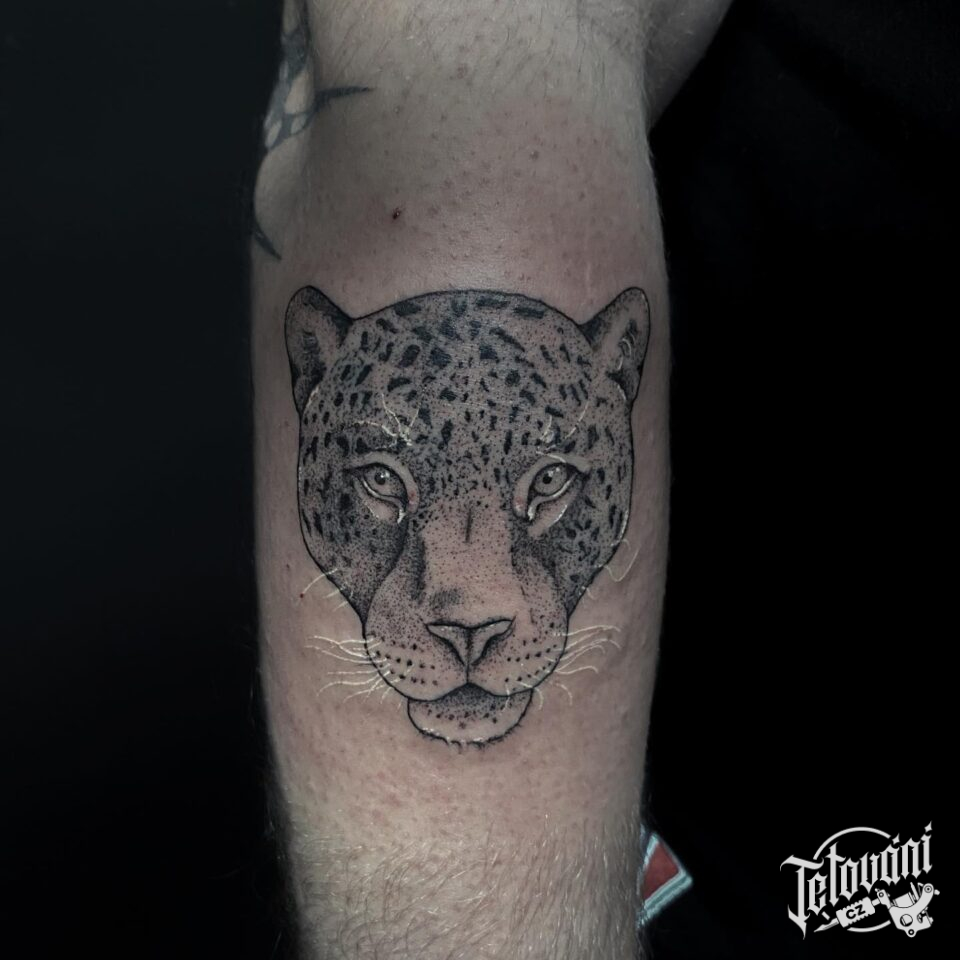 Tetování zvíře, divoká kočka, levhart na předloktí
