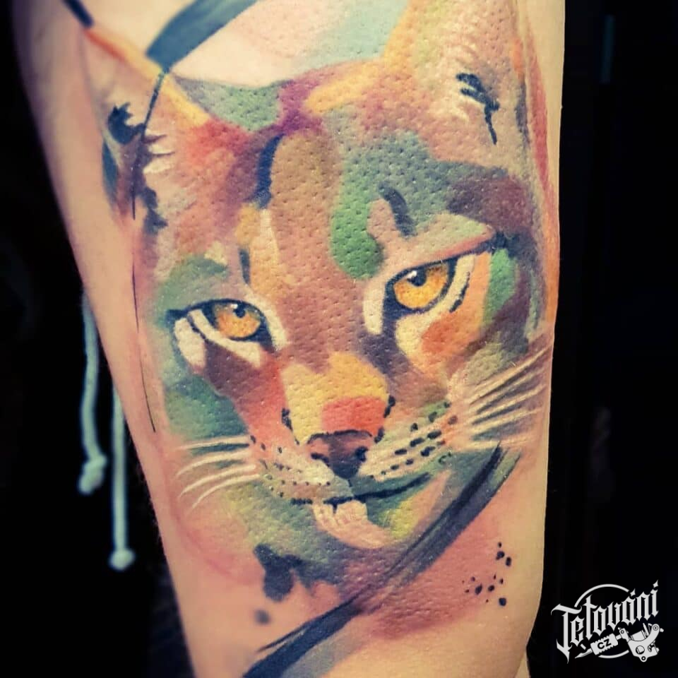 Tetování zvíře, divoká kočka na paži
