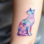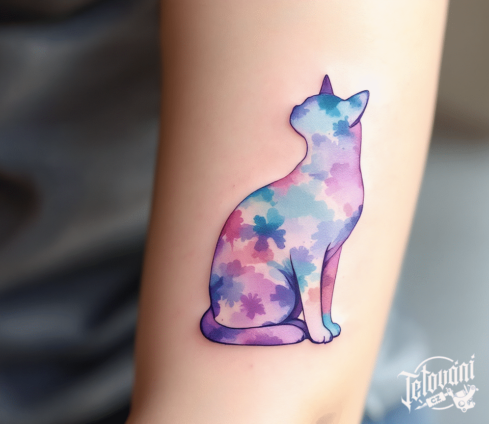 Tetování zvíře, duhová kočka silueta ruce