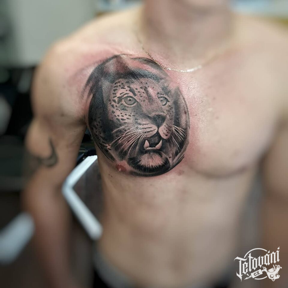 Tetování zvíře gepard na prsa