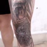 Tetování zvíře gorila, pavouk, pavučina, lebka, leopard na nohu