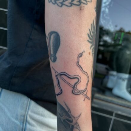 Tetování zvíře had a meč na holeň