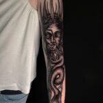 Tetování zvíře had a portrét na ruce