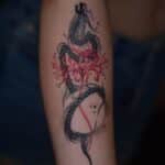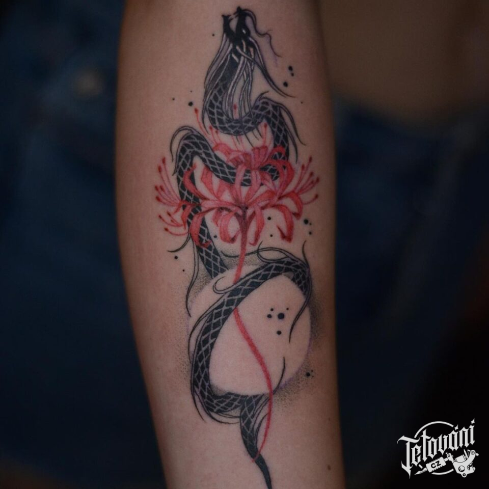 Tetování zvíře had, květina na předloktí