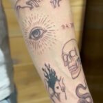 Tetování zvíře, had, lebka, boží oko a ruce na předloktí