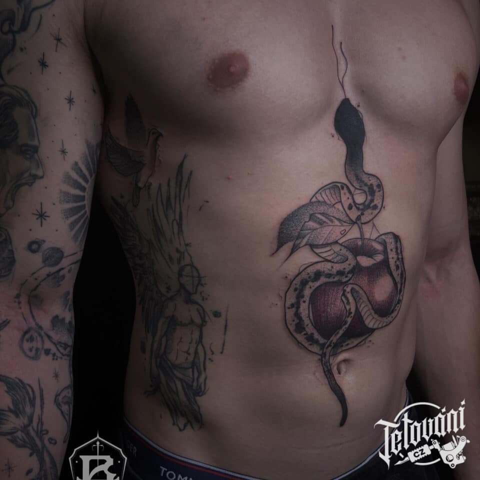 Tetování zvíře, had na břichu
