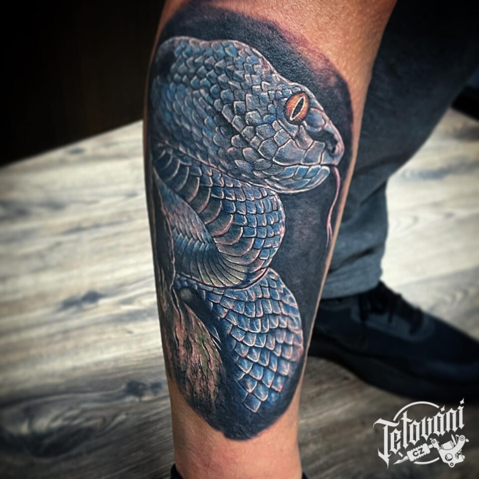 Tetování zvíře had na holeň