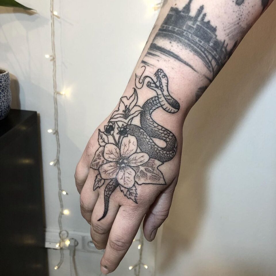 Tetování zvíře had na hřbetu ruky