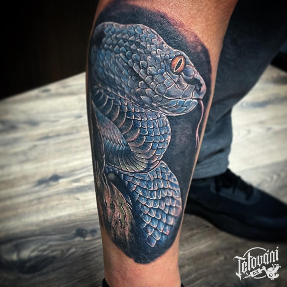 Tetování zvíře, had na lýtku