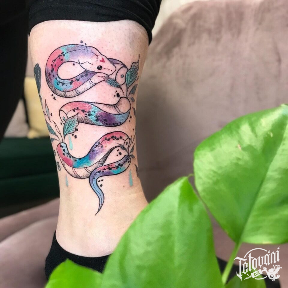 Tetování zvíře, had na noze