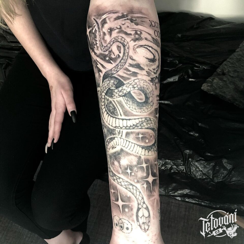 Tetování zvíře, had na předloktí