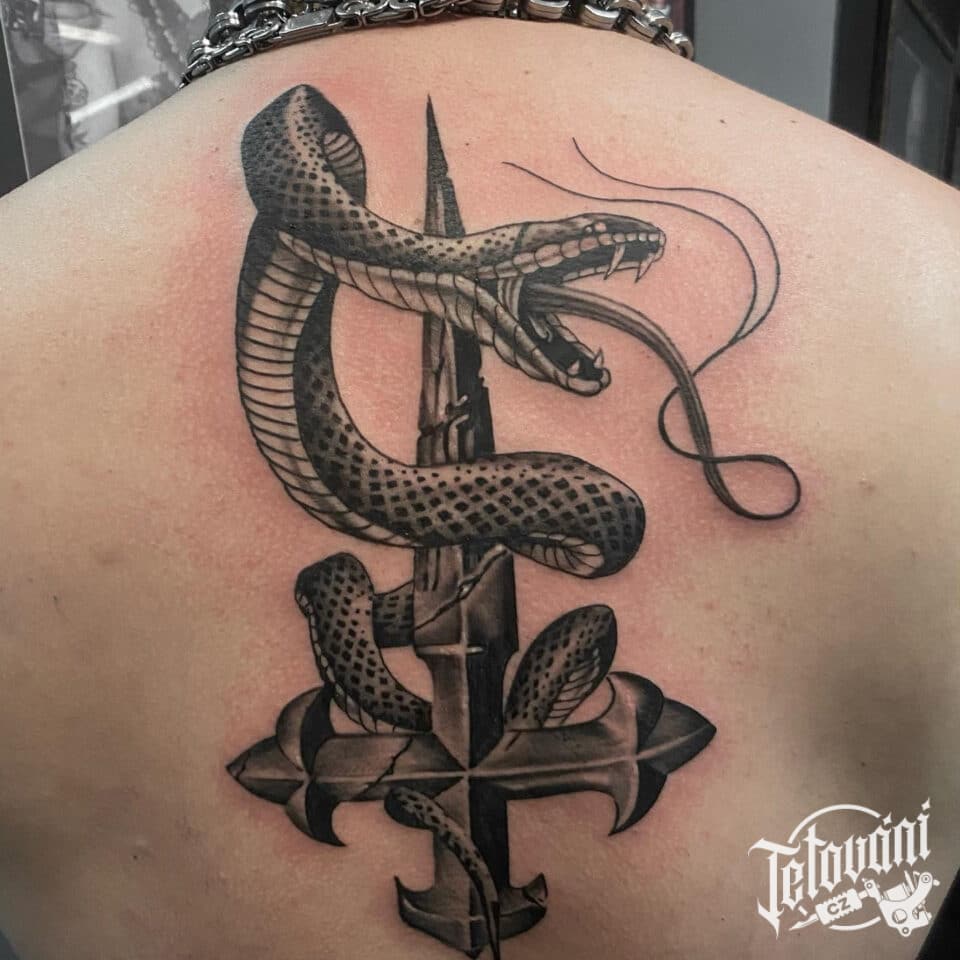 Tetování zvíře, had na zádech