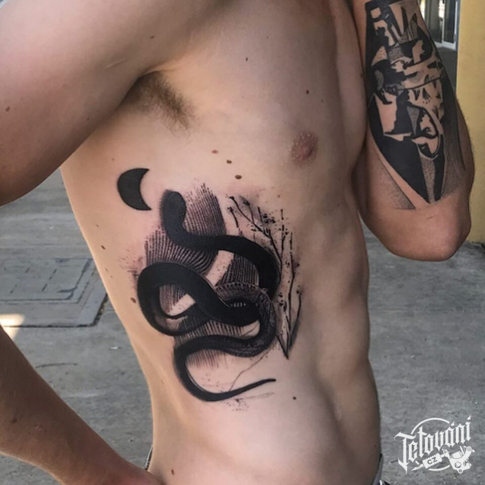 Tetování zvíře, had na žebrech