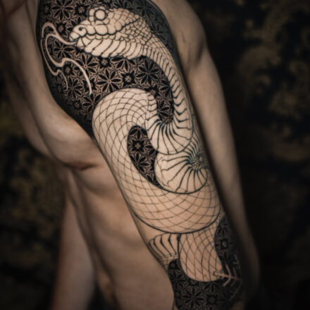 Tetování zvíře, had, ornamenty na předloktí