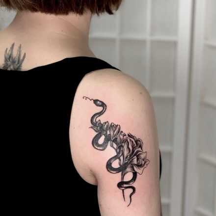 Tetování zvíře had s lebkou na předloktí