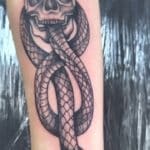 Tetování zvíře had s lebkou na předloktí