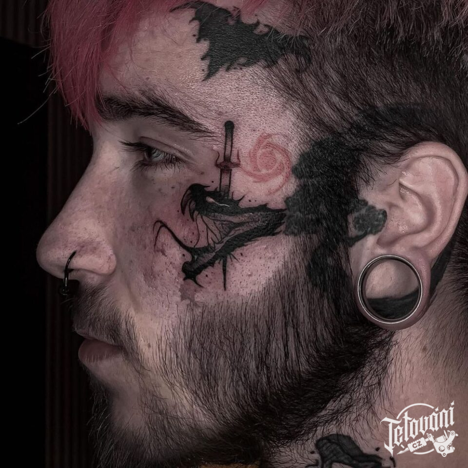 Tetování zvíře, had s mečem na obličeji