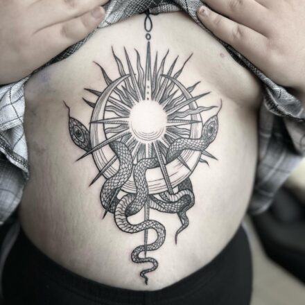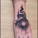 Tetování zvíře had, slunce, měsíc na hřbet ruky