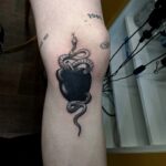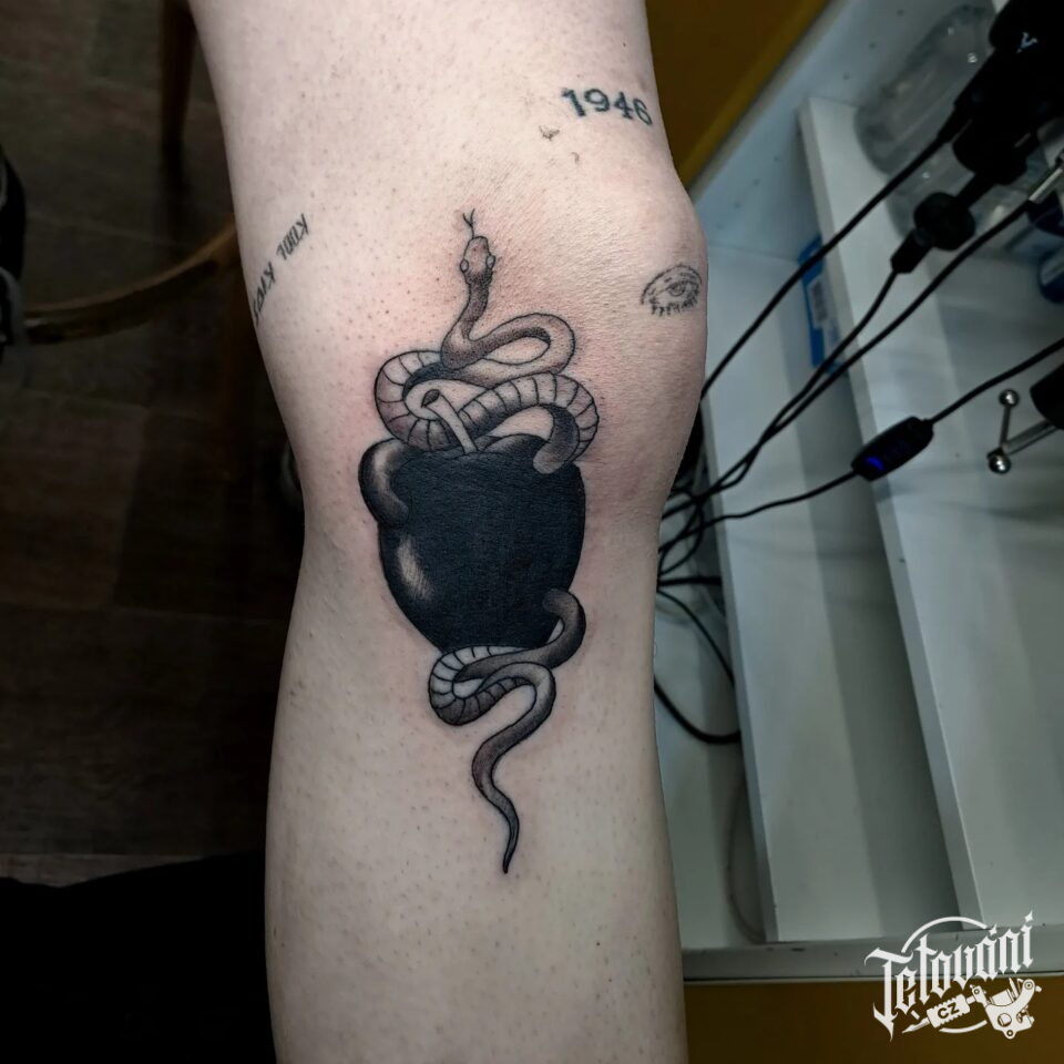 Tetování zvíře had v jablku na koleno